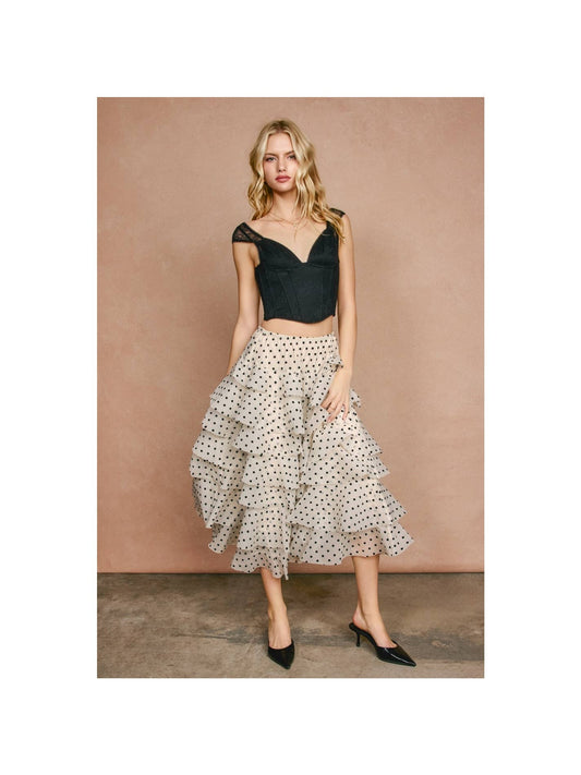 Sugar Dot Ruffle Tiered Midi Skirt