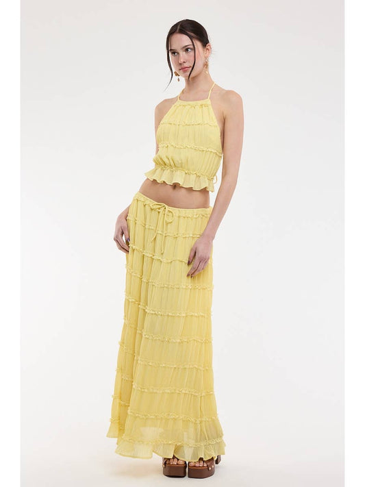 Yellow Open Top & Maxi Skirt Set