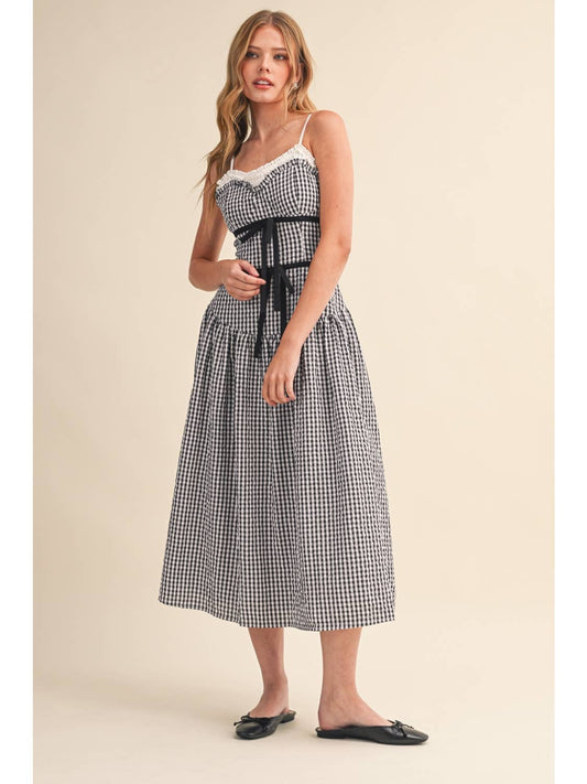 Sold outGingham Ribbon Corset Midi Dress