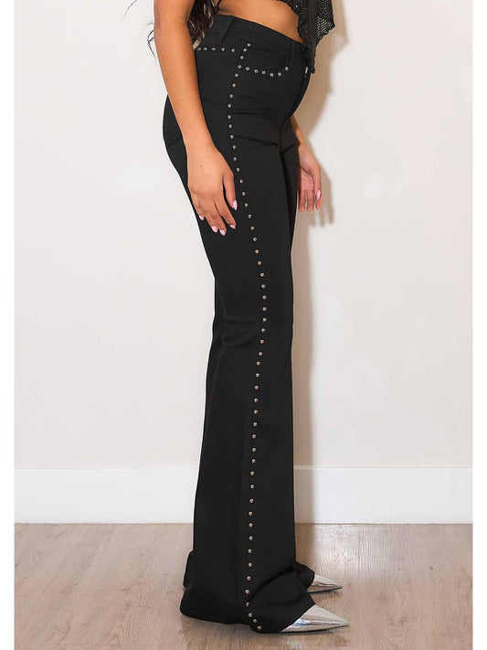 Black Flare Studded Denim