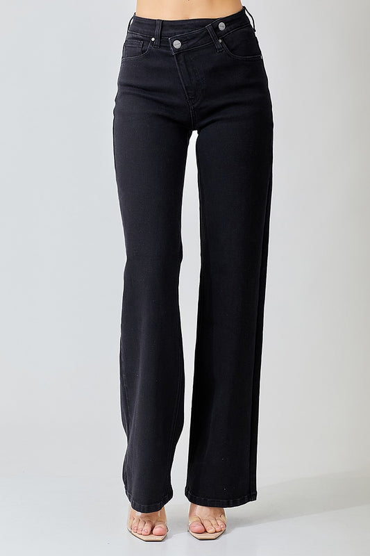 Black Crossover Wide Leg Denim