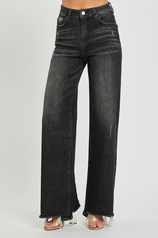Washed Black Wide Leg Denim