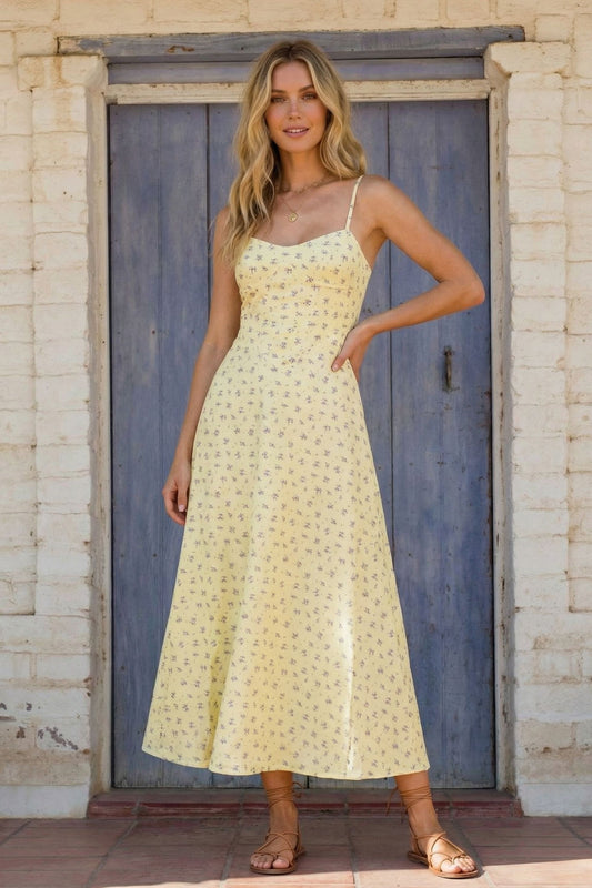 Butter Yellow Floral Midi Dress