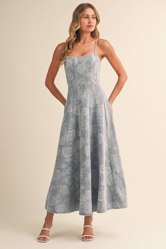 Floral Denim Maxi Dress