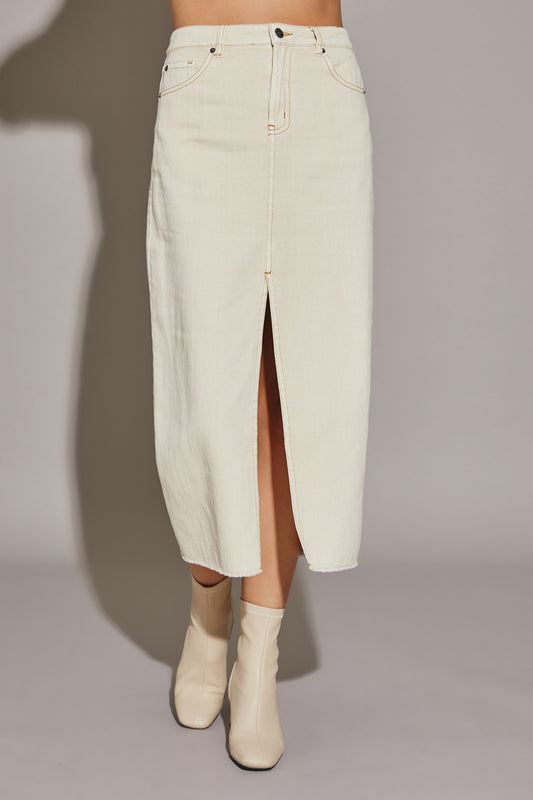 Front Slit Midi Denim Skirt