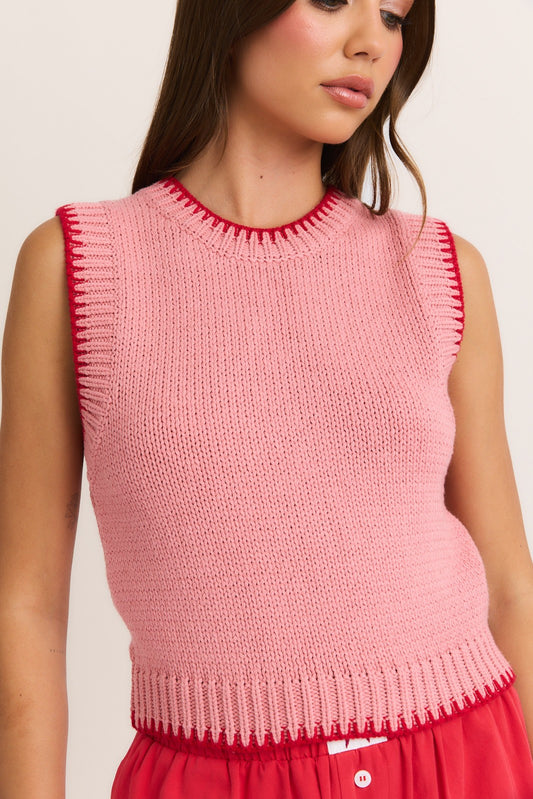 Blush & Red Sweater Vest Top