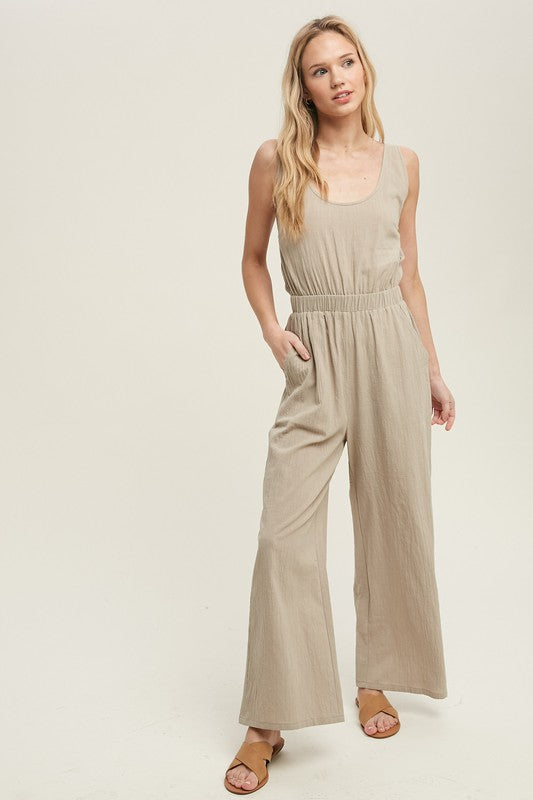 Taupe Linen Jumpsuit
