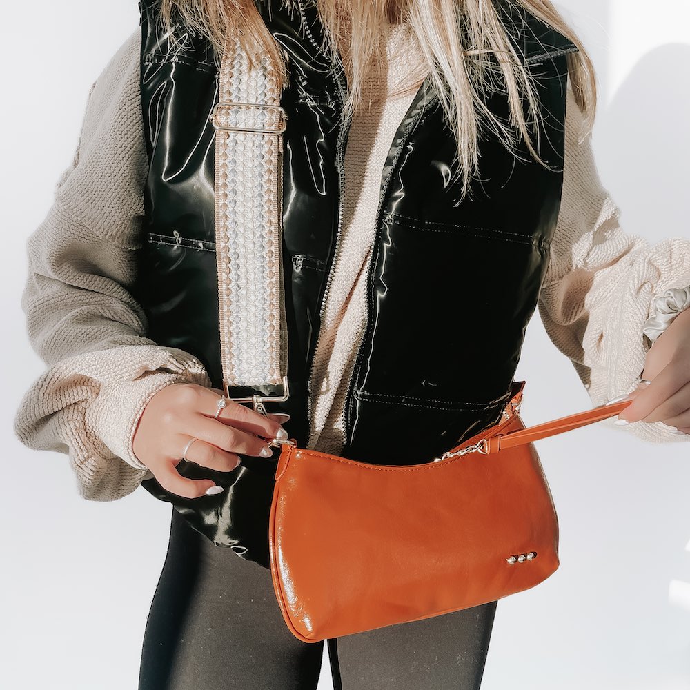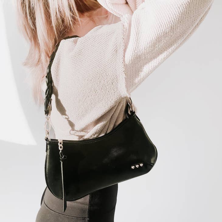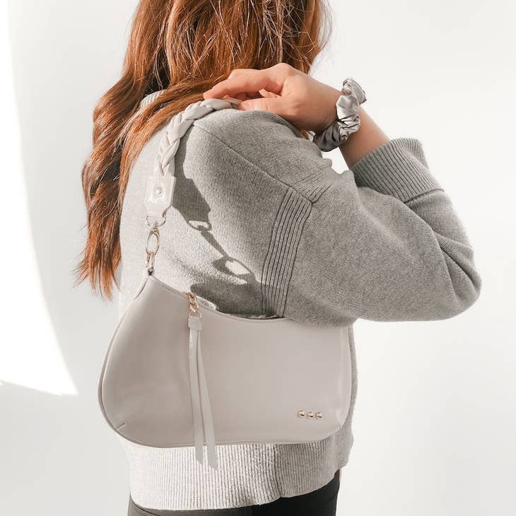 Introducing our Brynlee Braided Vegan Leather Bag - versatile for both shoulder and crossbody wear. Comes with a playful tassel attached to the zipper closure and two trendy straps: one braided shoulder strap and another neutral patterned crossbody canvas strap. Carry all your essentials in style!