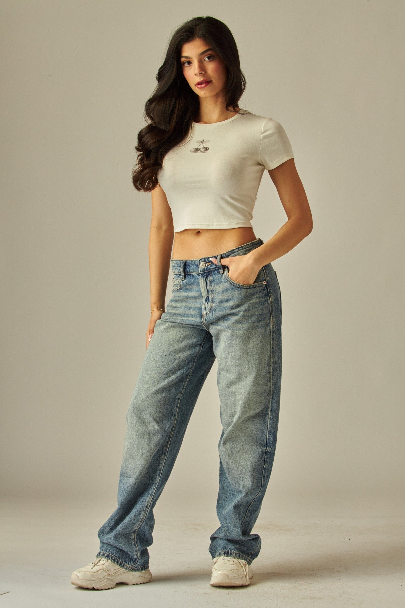 Nothing tops a crop and some jeans. Graphic T-shirt brings a classic touch with its short sleeves and crew neckline. Adorned with graphic design on the front, this tee combines trendy design with cropped fit for a stylish finish. Length: Cropped (hits above the belly button)