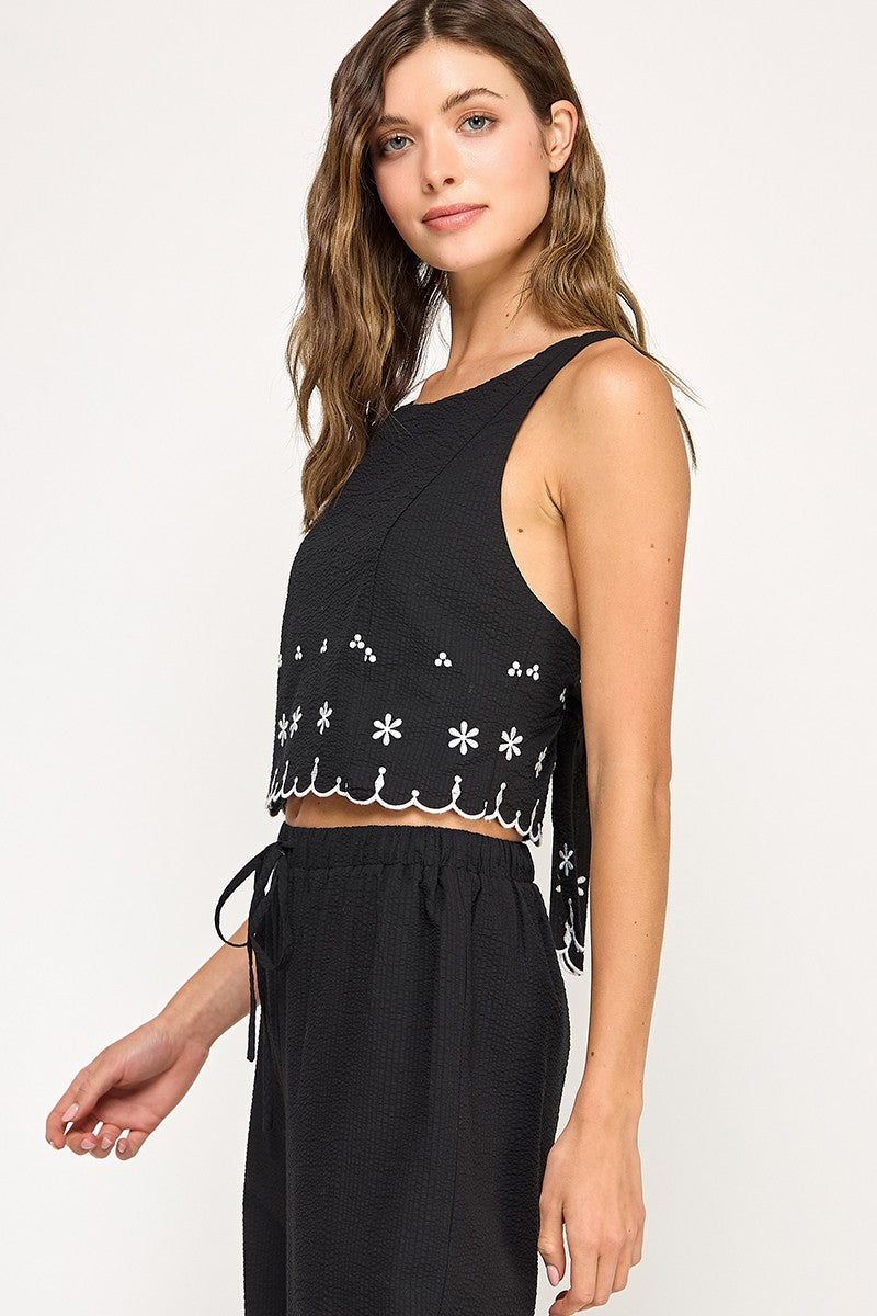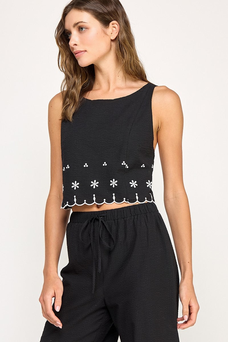 Cotton Gauze Black Embroider Top