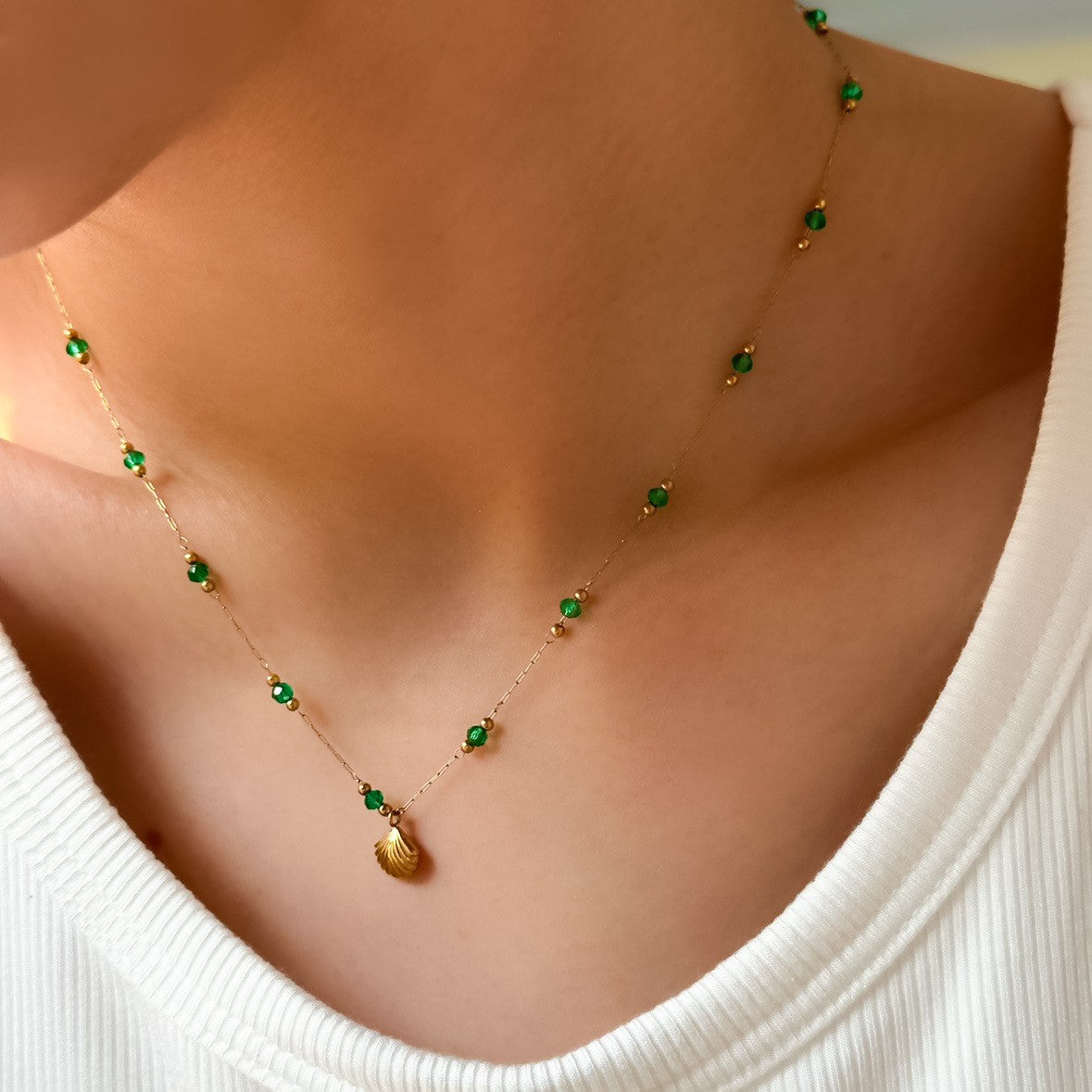 Gold and Green Shell Necklace