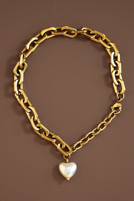 Pearl Heart Charm Bracelet