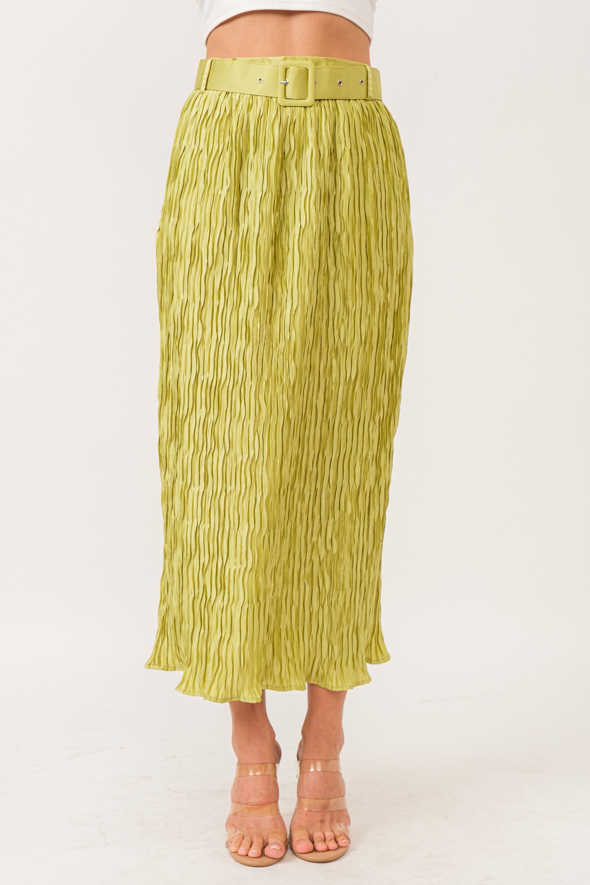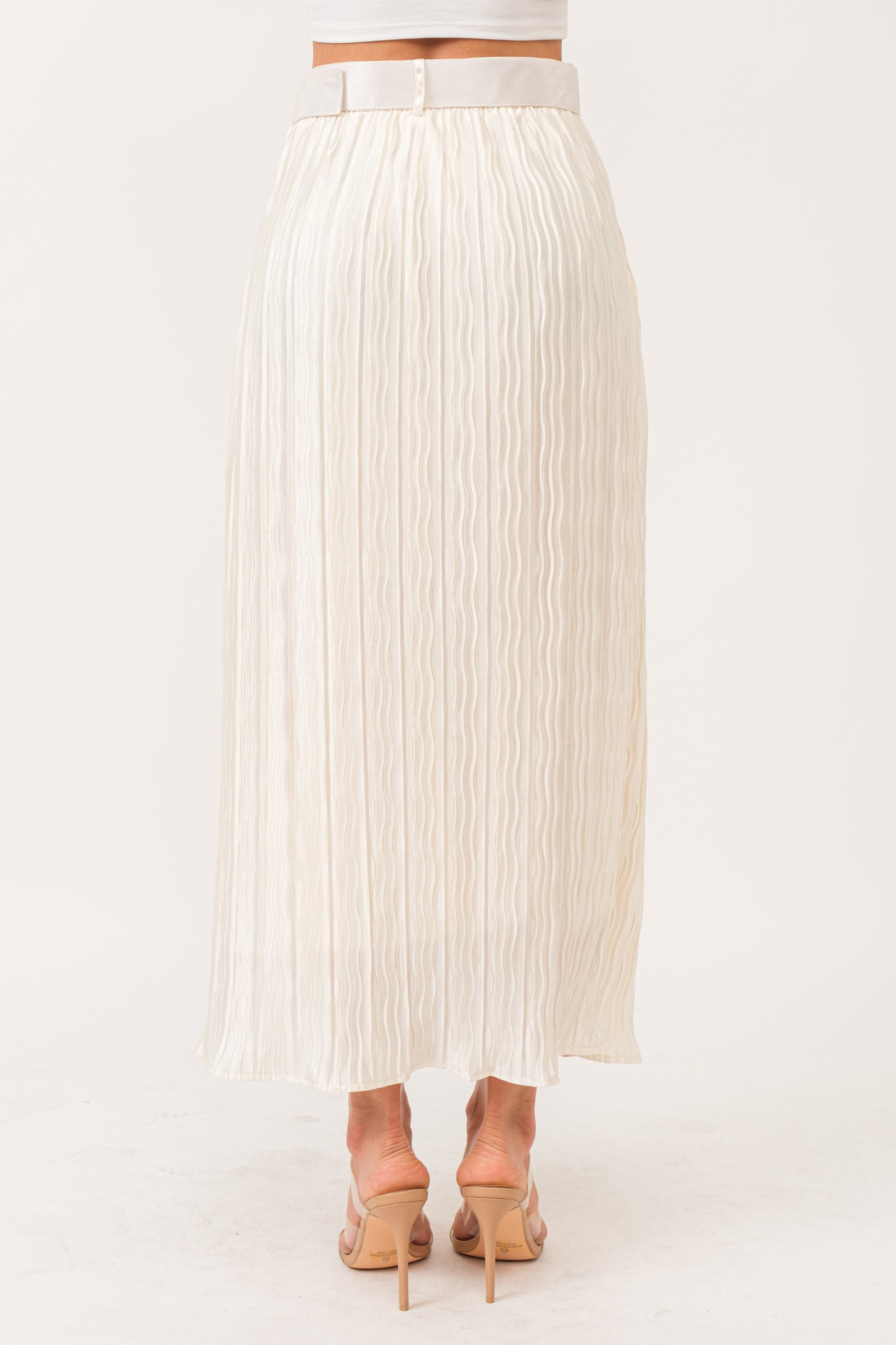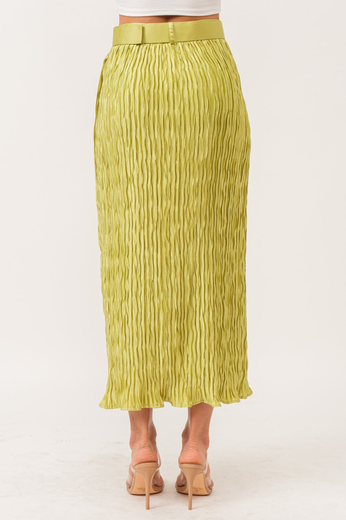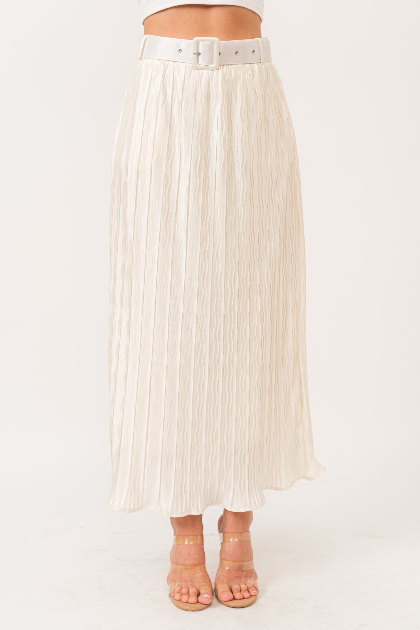 Pleated Midi Belted Skirt