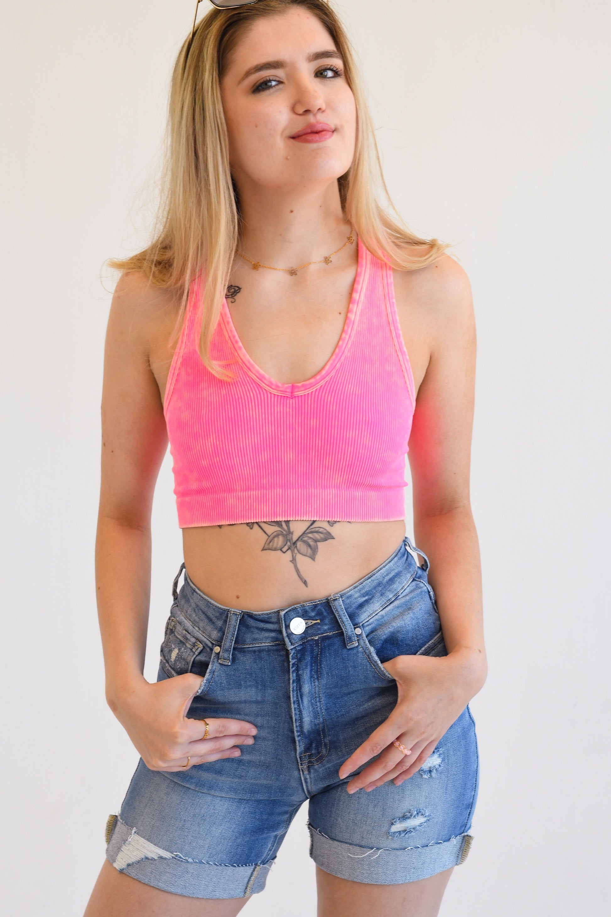 Ribbed racerback v-neck cropped tank/bralette. Perfect for layering!
