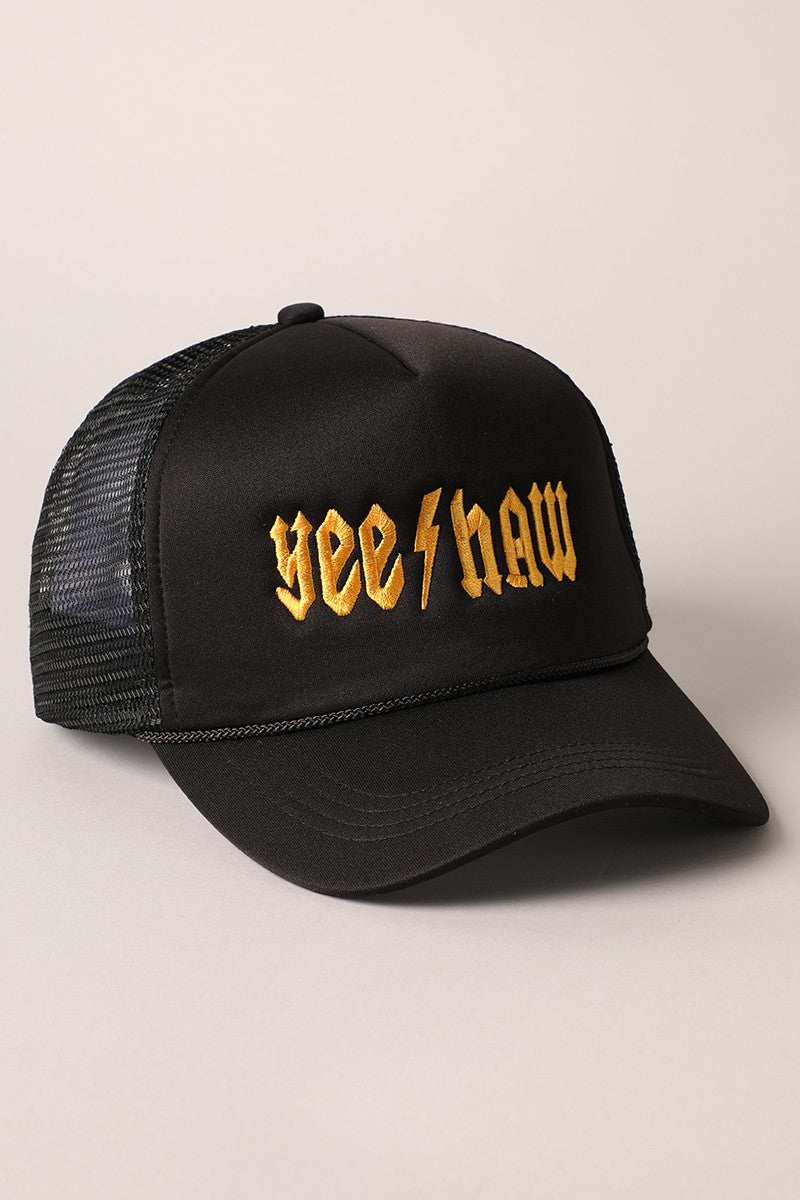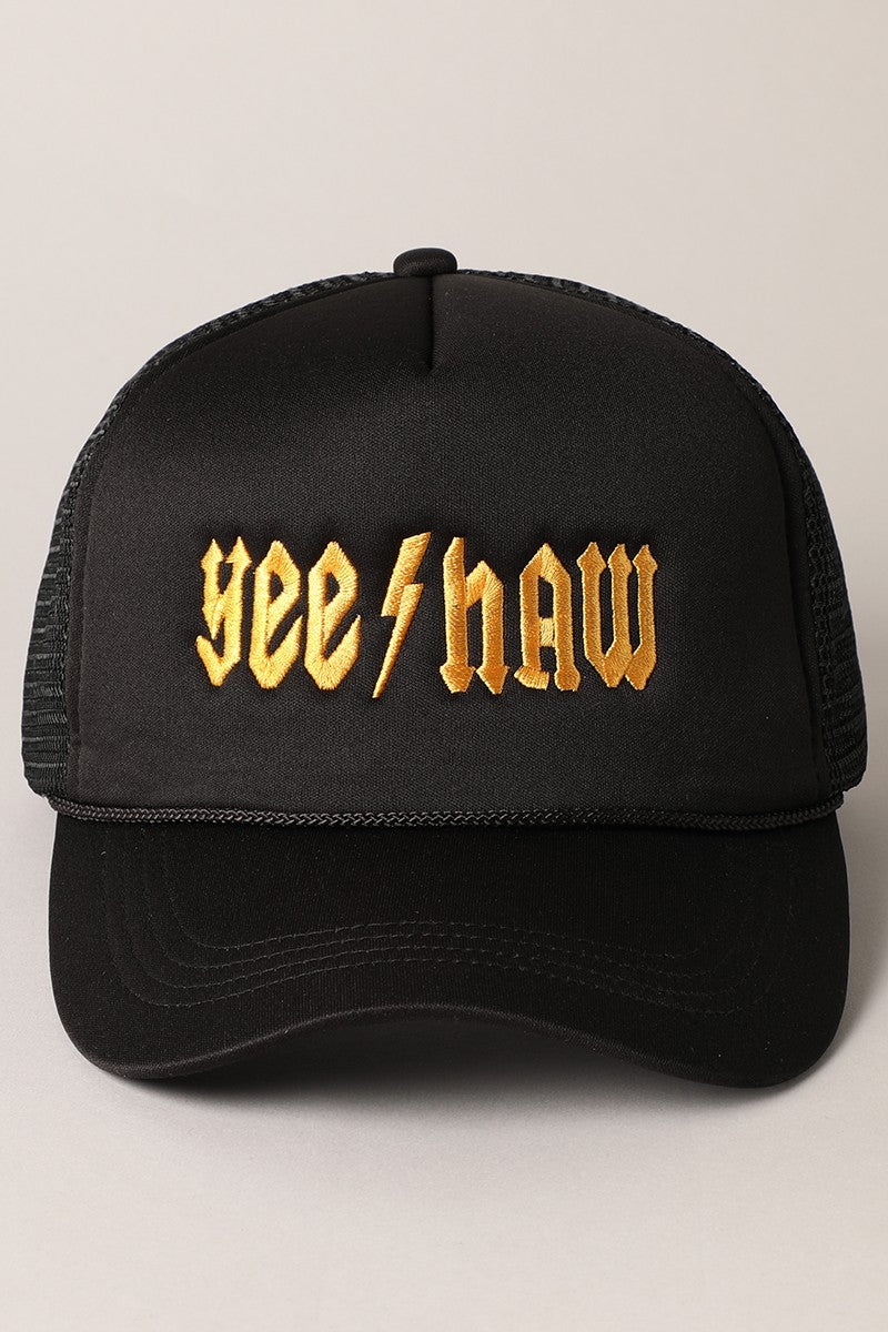YeeHaw Letter Graphic Embroidered Foam Trucker Hat - "yeehaw" Embroidered Letter Design - 5 Panel Trucker Hat - Snap Closure - Trendy Casual Hat for Everyday Fashion **One Size Fits Most - Adjustable Snap Closure Attached**