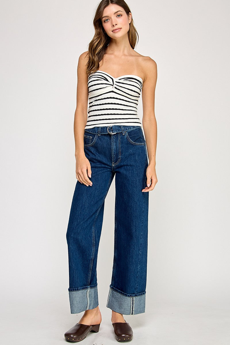 Twist Front Stripe Tube Top