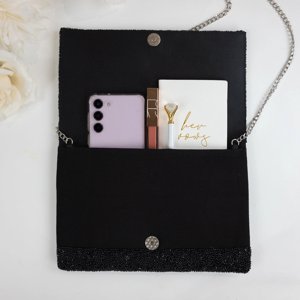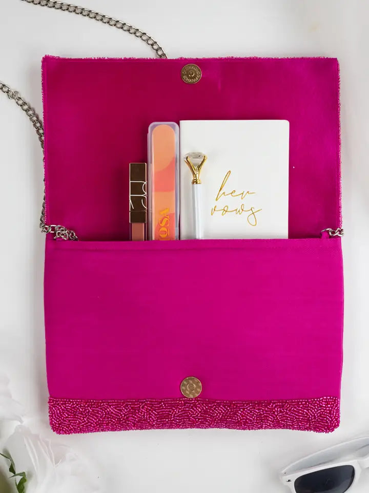All beaded clutches are handmade. - Made in small batches - One of a Kind Design - No two handmade items are exactly alike. Variations in color, shading, texture, shape and beads are inherent in a handmade item. This means that every handmade item you purchase is also one-of-a-kind.