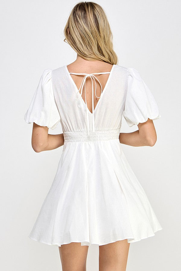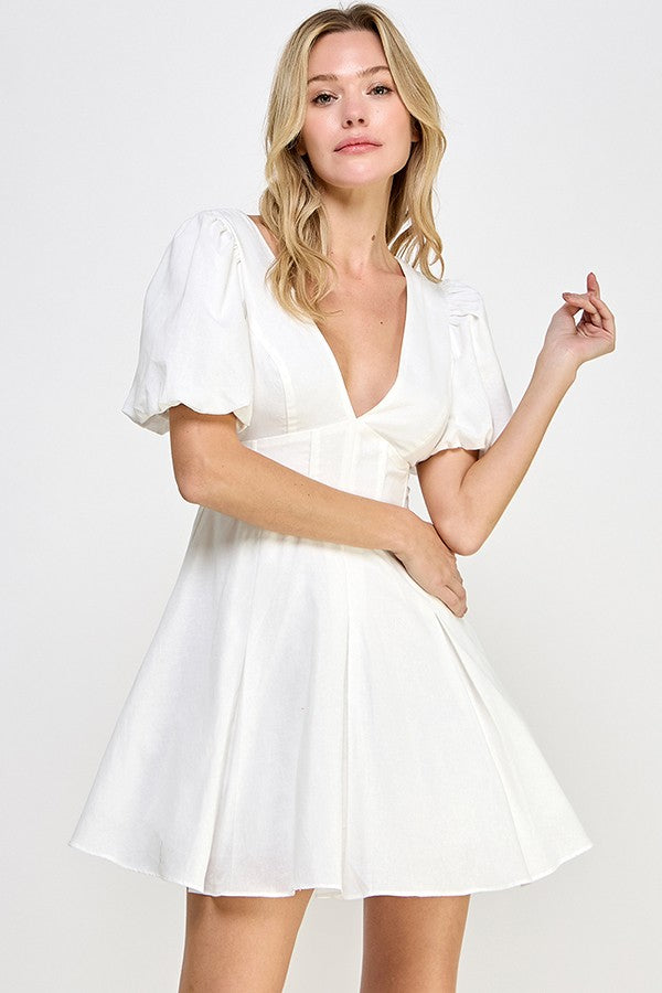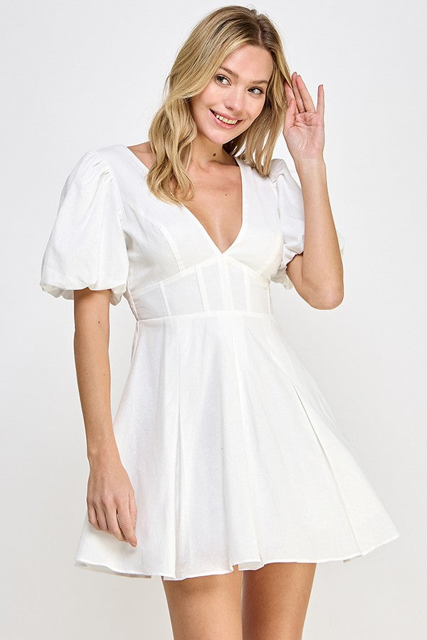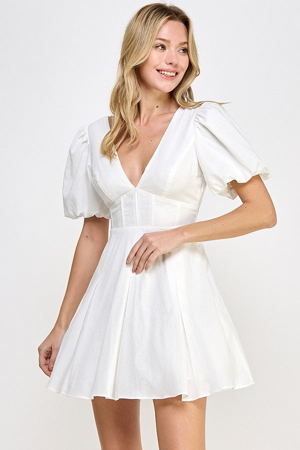 White Puff Sleeve Corset Dress