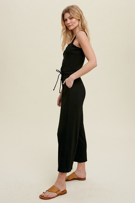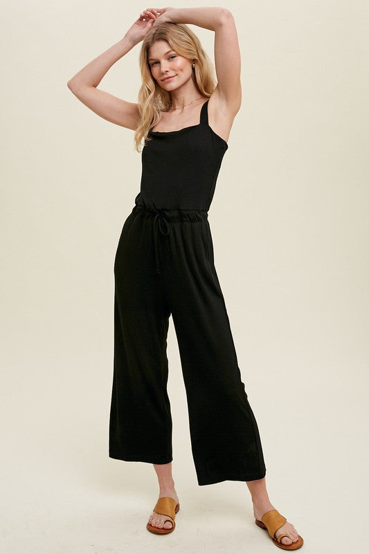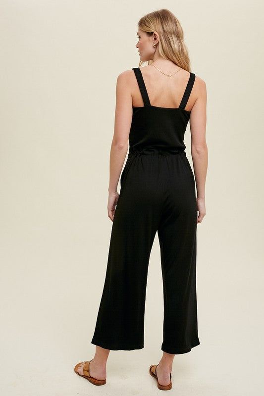 Black Ribbed Midi Jumpsuit