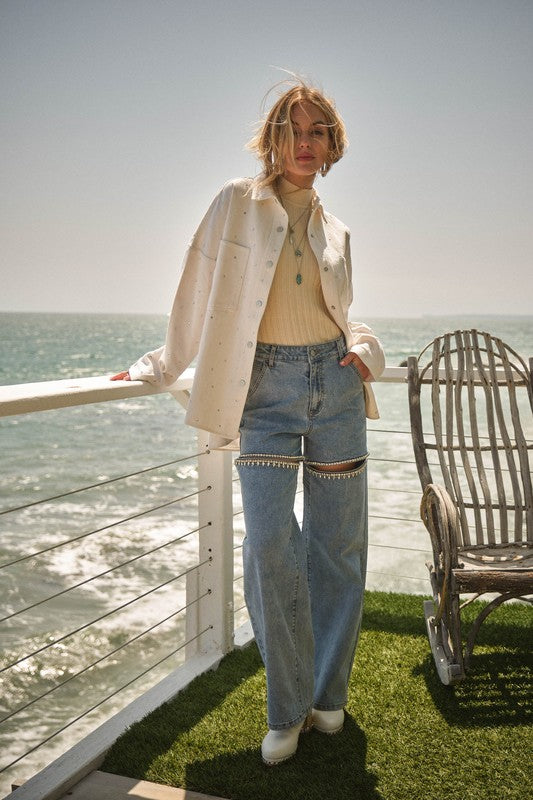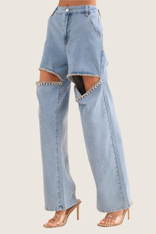 Cut Out Rhinestone Denim