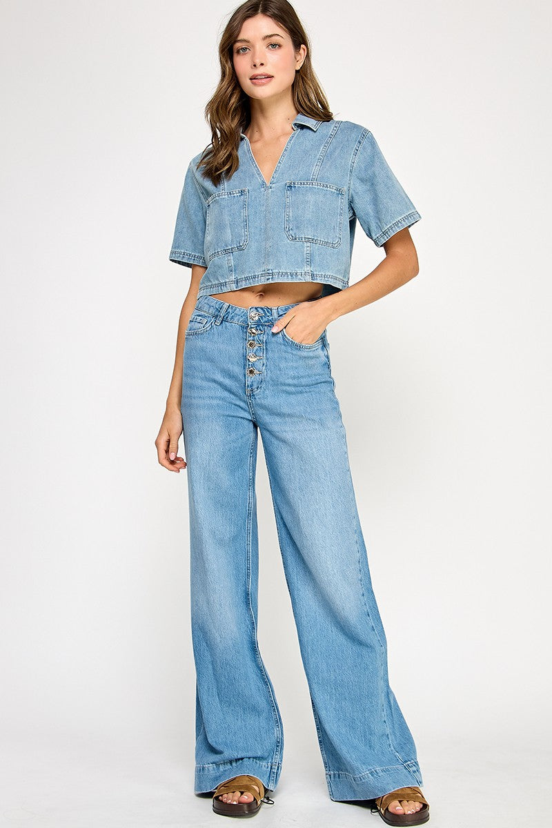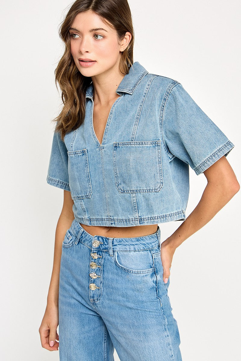 The Denim Top embodies casual elegance, blending timeless denim appeal with a modern crop silhouette. Crafted with meticulous attention to detail from premium denim, this innovative piece offers a perfect fusion of style, comfort, and versatility. The front pocket detail not only adds utilitarian charm but also offers functional storage for small essentials like keys or lip balm. The summer matching sets for women are suitable for club, street, evening, night out, date, hip-hop, festival, casual. Perfect for vacation, travel, party, shopping, outdoor, lounge, daily, school, as well as paired with any casual style.