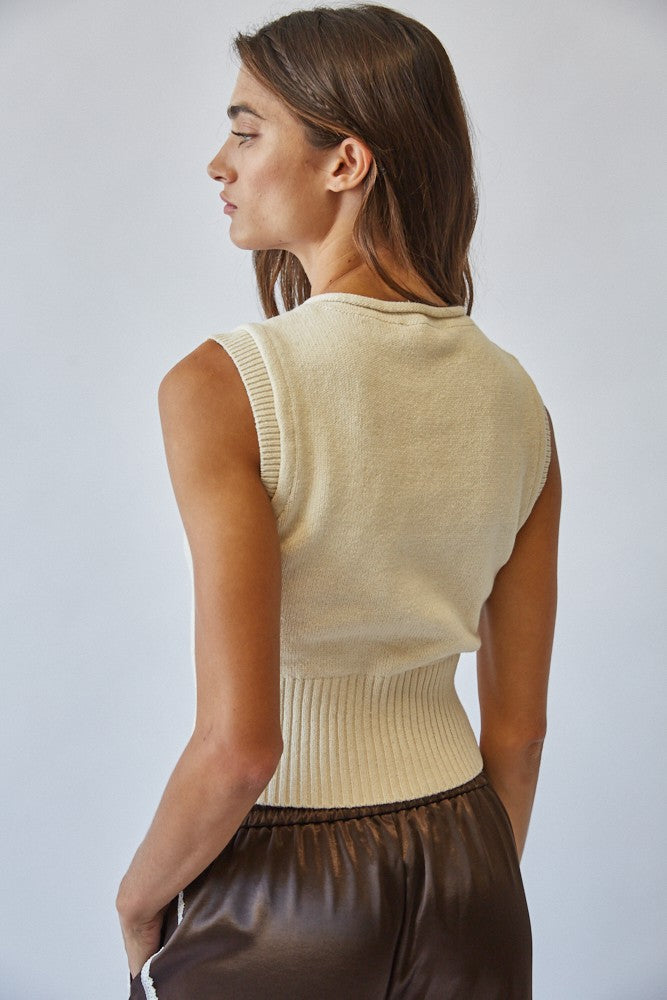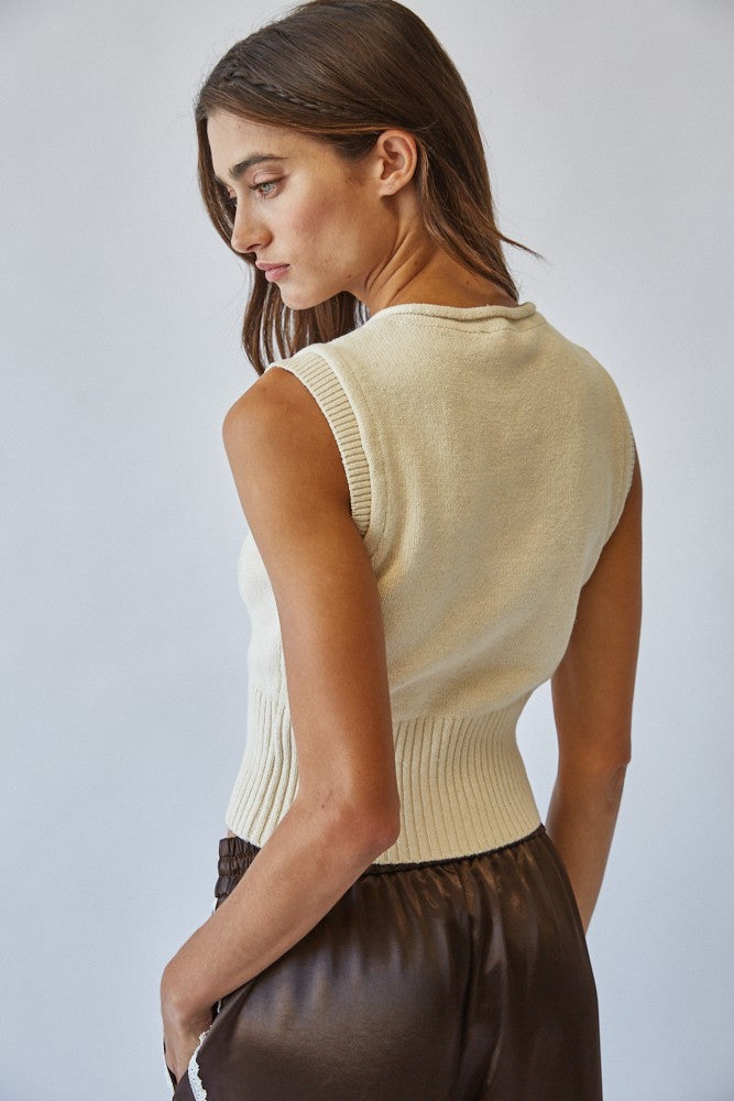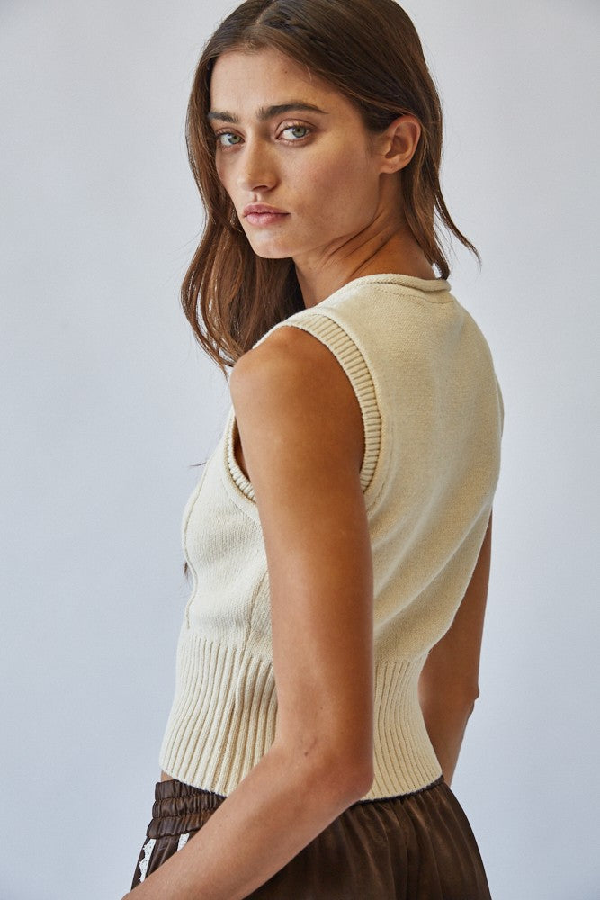 Natural Roll Up Neck Sweater Vest Top