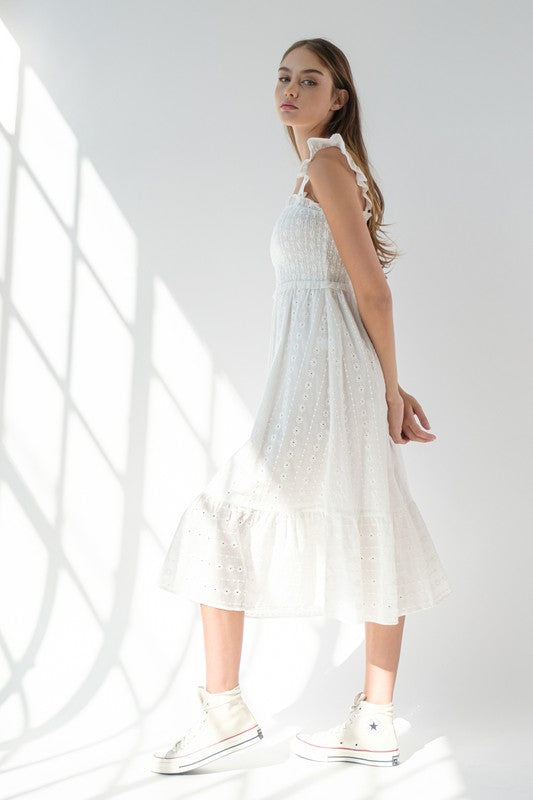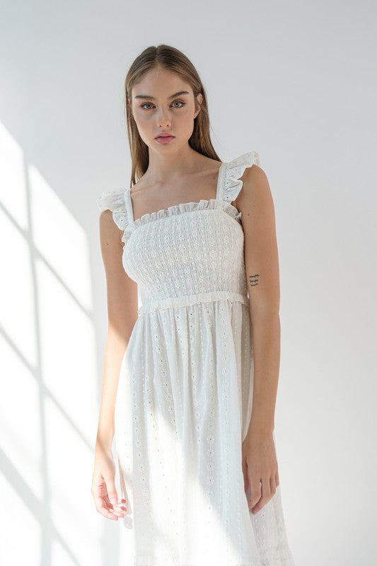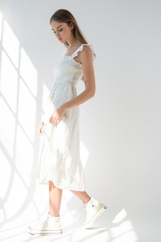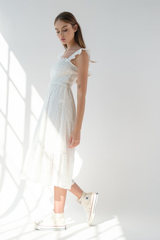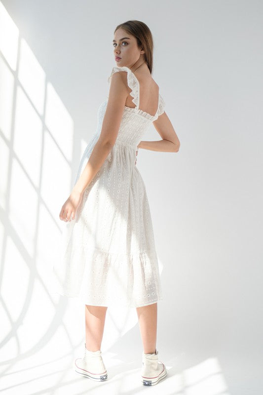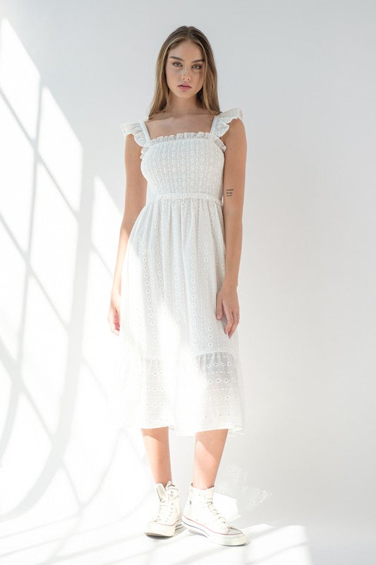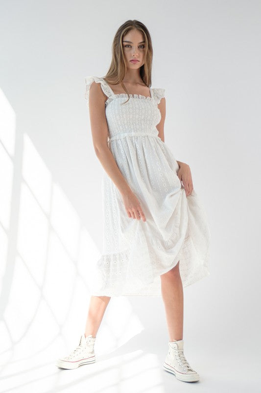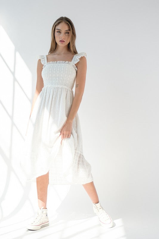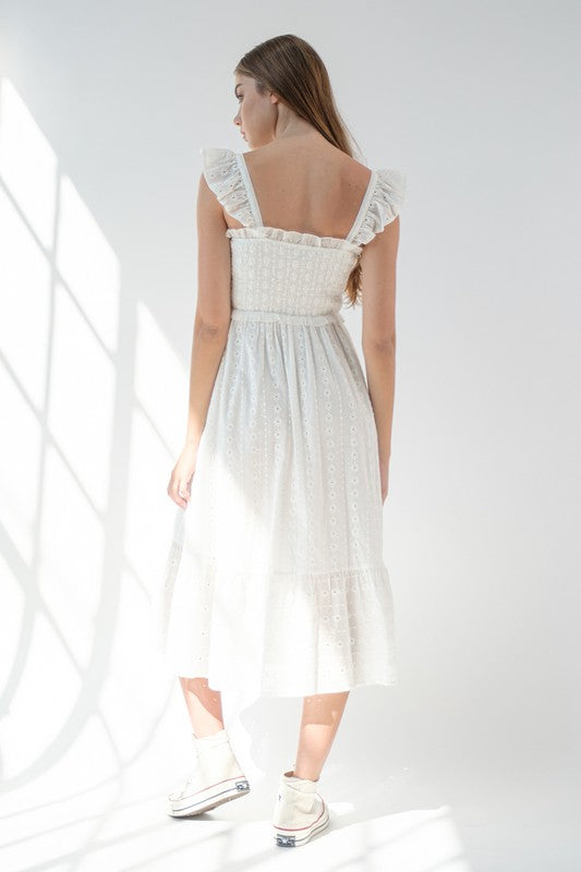 White Flutter Sleeve Midi Dress