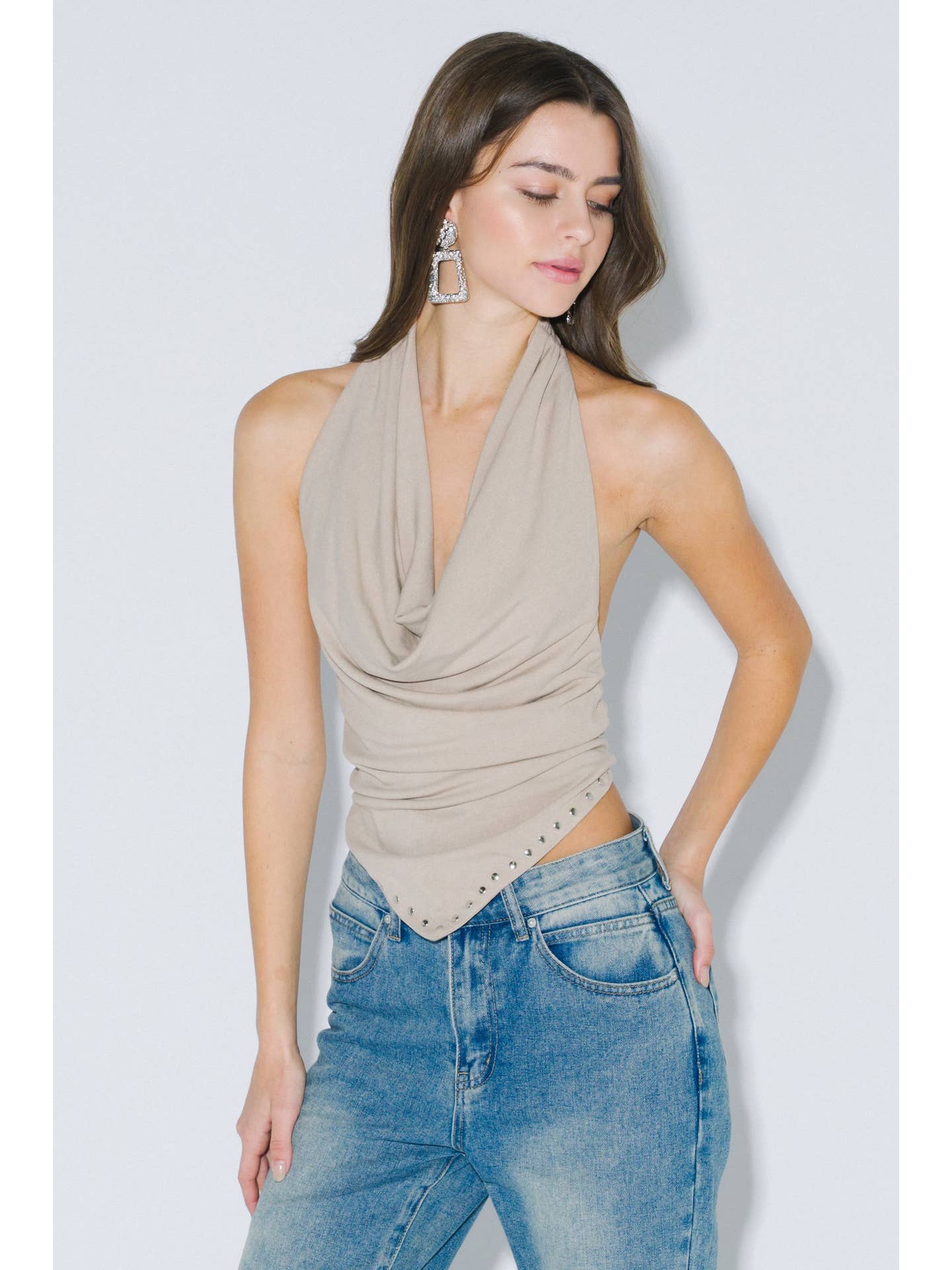 Cowl Neck Taupe Stud Top