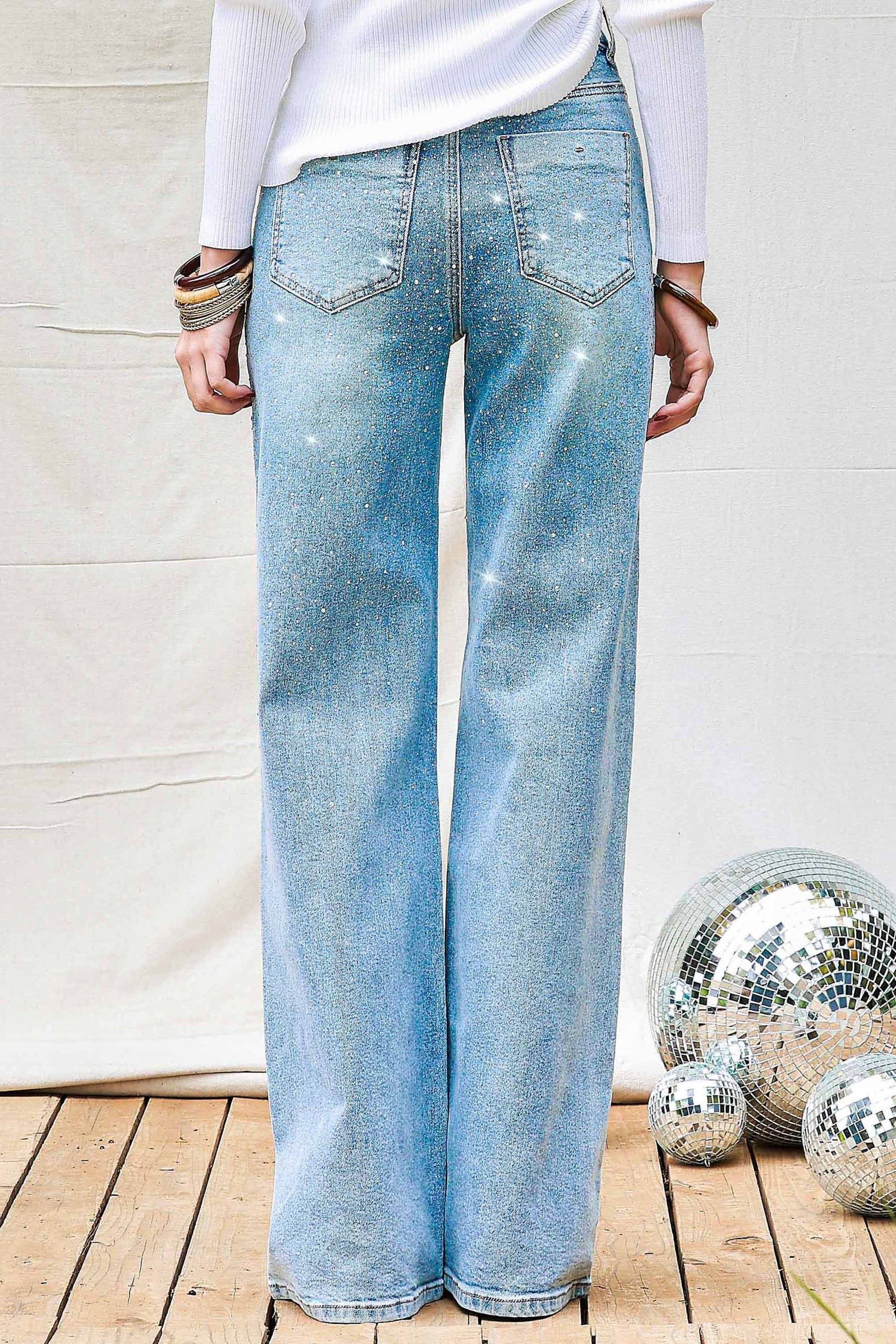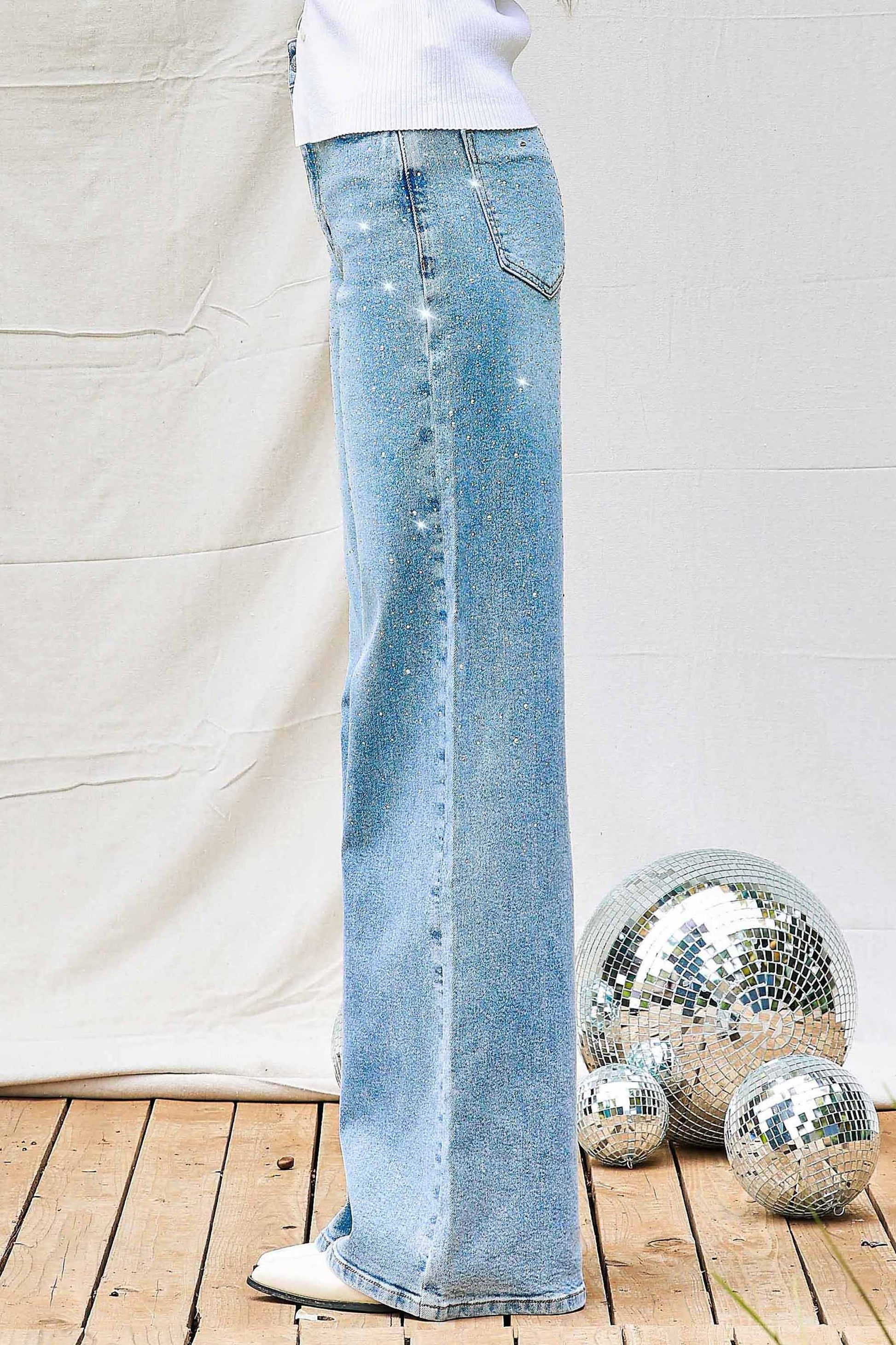 Rhinestone Wide Leg Denim